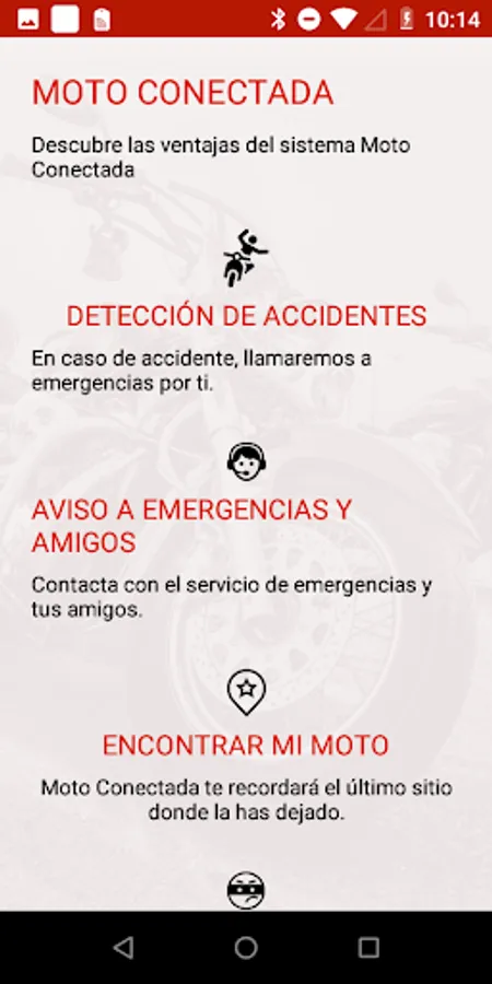 Moto Connected is a Mapfre application designed to ensure driver safety. The application informs in the event of an accident at the Mapfre alert reception center and, if necessary, sends emergency services to assist the driver. The precise application of a self-instantaneous device that facilitates Mapfre at the request of the user. Please contact the Mapfre customer service center or contact your agent