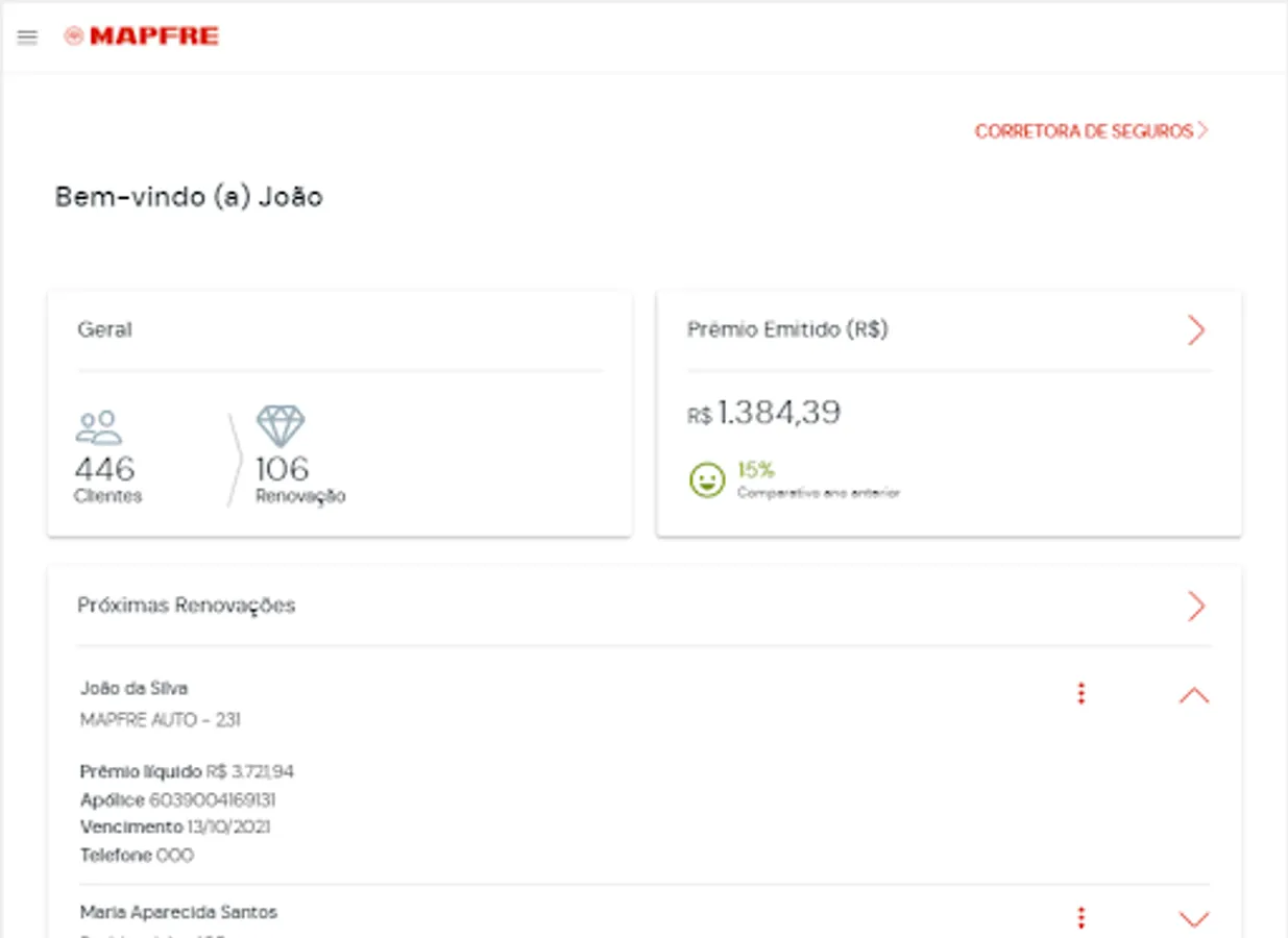 Feito para você, MAPFRE partner, you have the simplicity to manage two clients with the details of the apolice, endorsement, you can alter your data cadastrais, manage your clients and accompany your bandages. Tudo isso, na palma das suas mãos.