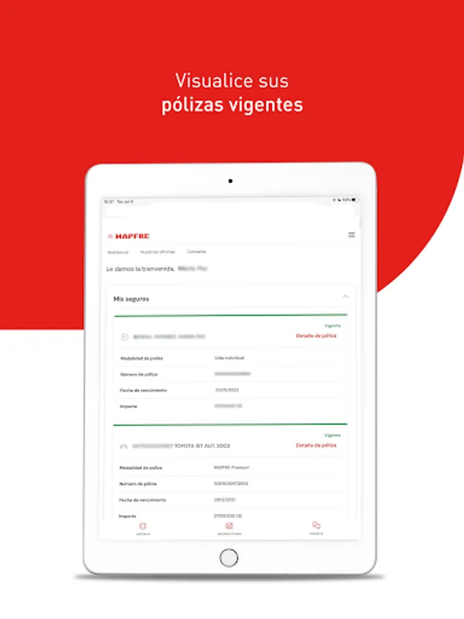 Therefore, we present the free app "MAPFRE Autoservicio" where you can, in a simple and intuitive way, access all your products contracted with us.
