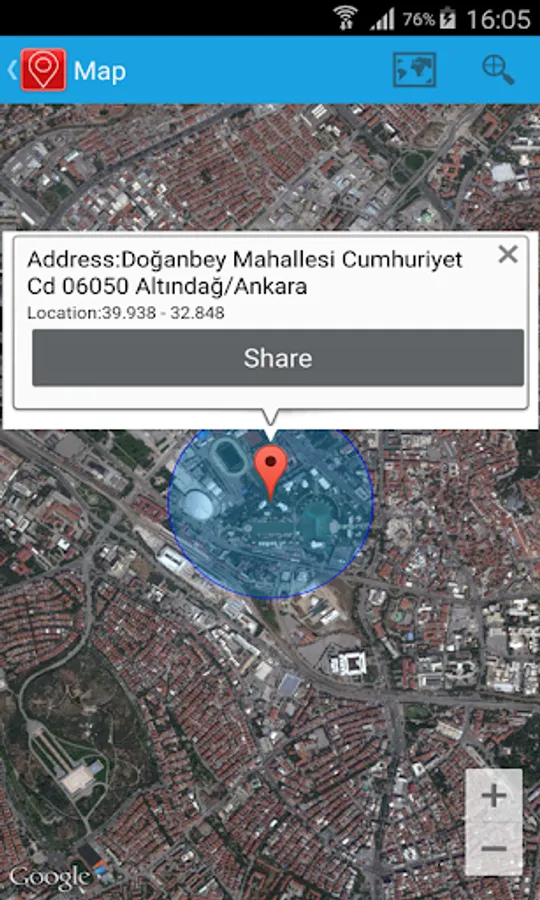 -Map Type (Normal, Hybrid, Satellite and Terrain)