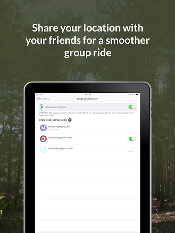 ►Continued use of the GPS and location sharing running in the background can significantly increase battery consumption. It is recommended to toggle it off when not needed to improve autonomy.
