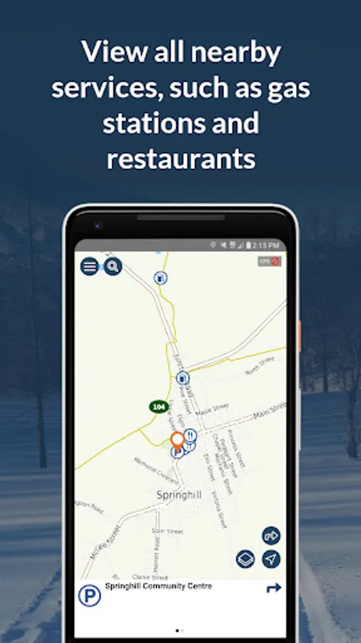 ► View nearby restaurants, gas stations, hotels, parking, and other services