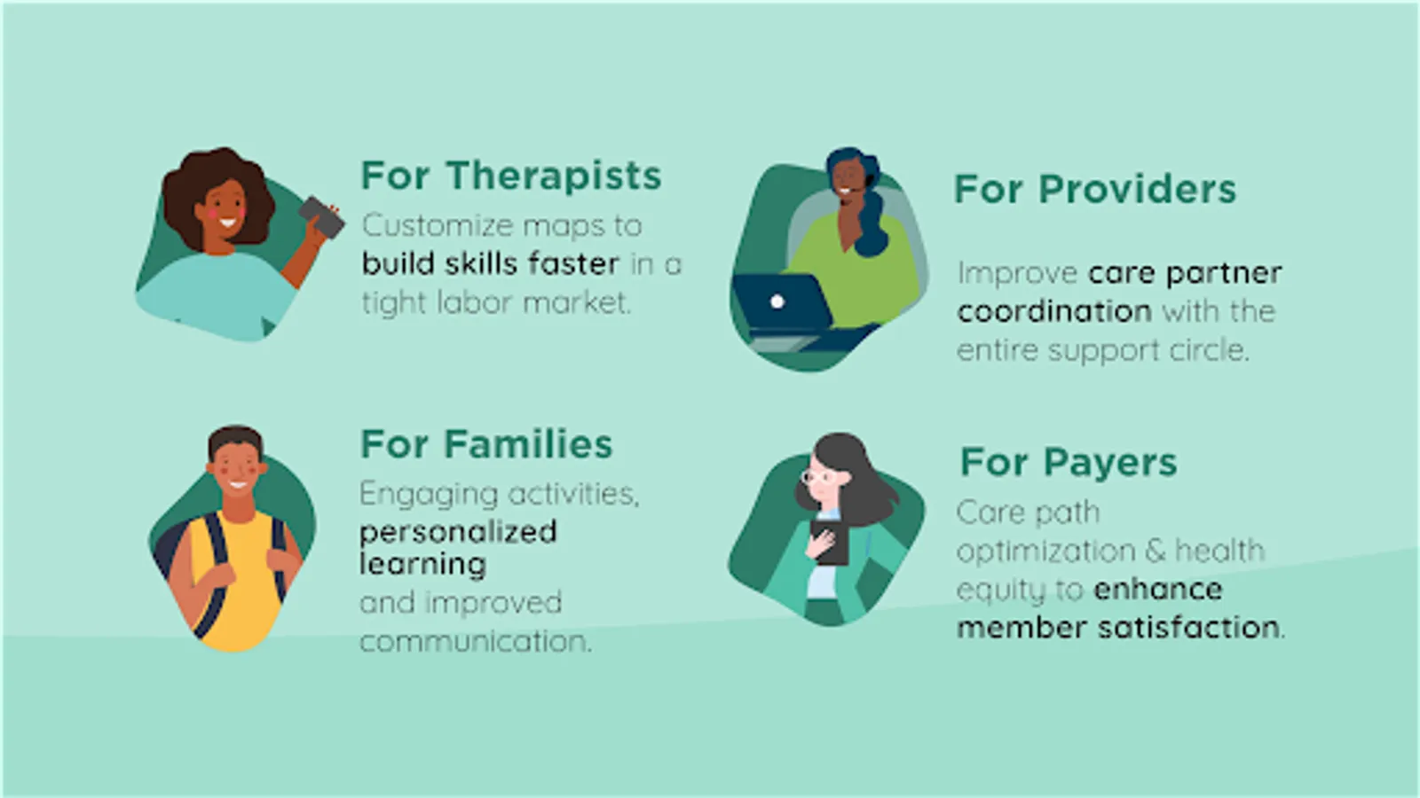 Individuals and caregivers will interact with the visual maps on their smart devices to assist with life skills and a variety of daily tasks.