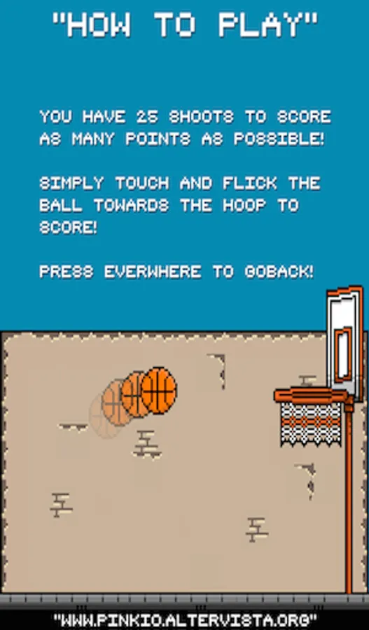 You have 25 shoots to score as many points as possible! simply touch and flick the ball towards the hoop to score!