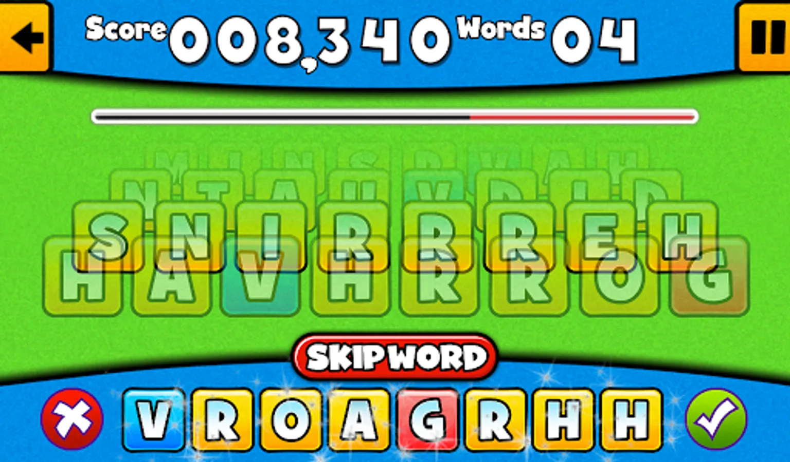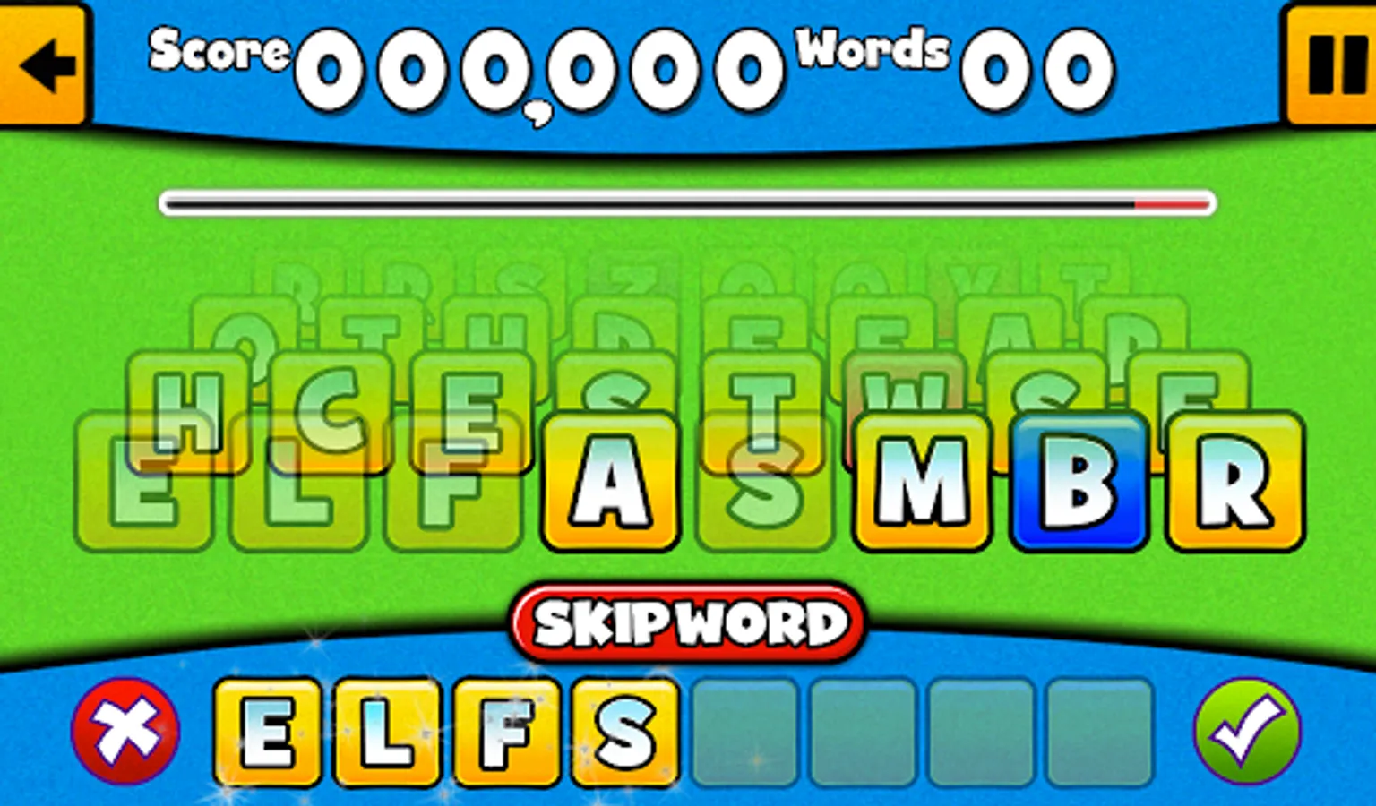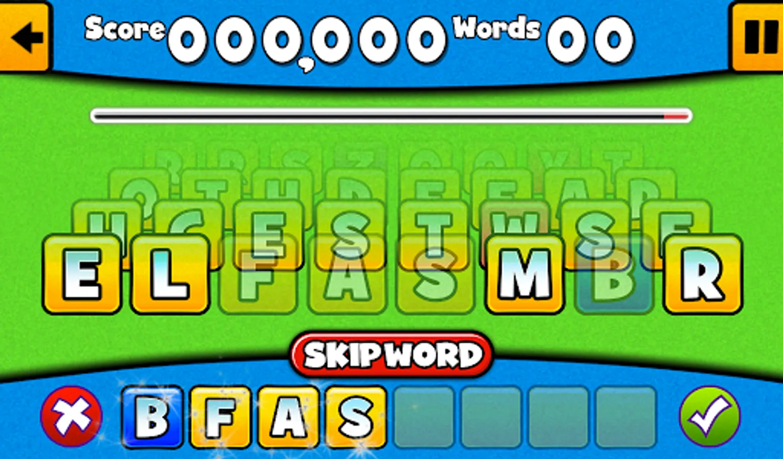 The objective of Words Geems is to make as many 3 - 8 letter words as you can before the 3 minute clock runs out. Using the gems in your words will increase your word score.