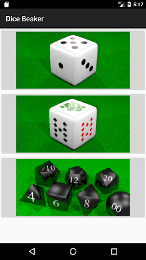 Includes conventional dice, poker dice and role-playing dice (RPG).
