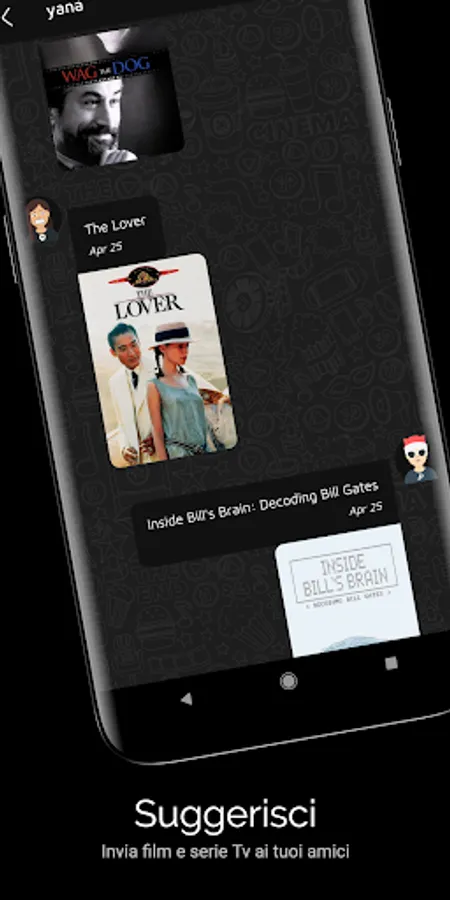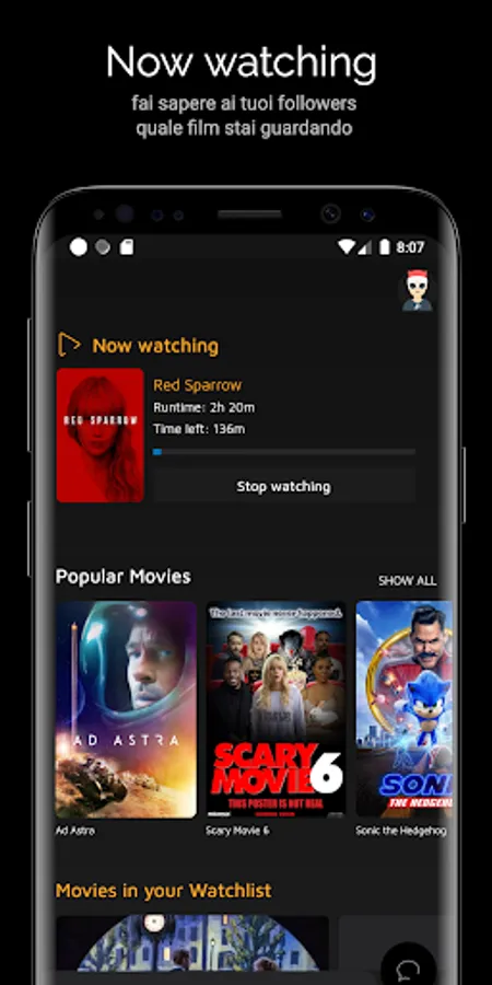 Receive suggestions from your friends and with the "imWatching" feature you can communicate in real time to all your followers which movie you are watching!