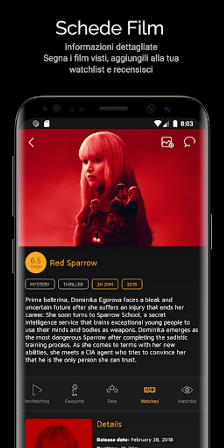 - Thanks to the minimal and intuitive graphics you will always have the most important information at your "eye": year of release, genres, network, duration (runtime) of the film, plot, director and much more