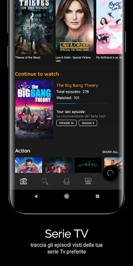 Save your TV series and track your progress by indicating the episodes viewed.