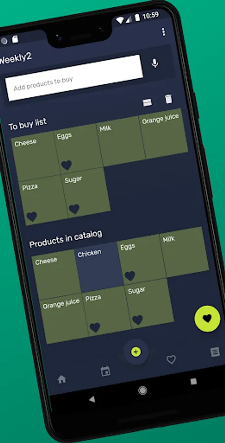 Create a shopping list with few easy clicks. Every time you add a new product, Weekly2 will add it to the catalog so the next time you will just click on it to add into the shopping list.