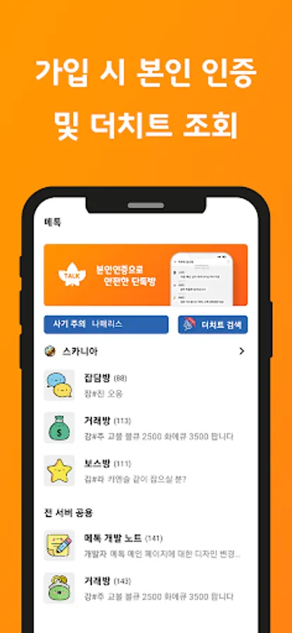 본인 인증 기반을 통해 3자 사기를 예방하는 메이플 단톡