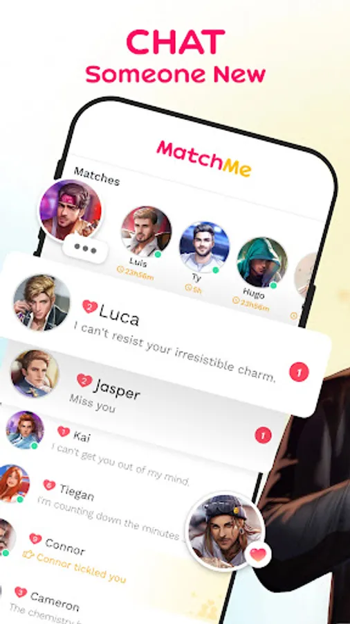 MatchMe is the latest hit virtual dating interactive story game! Get ready to dive into your second life where you can swipe, match, date and flirt with 100s of unique characters that will take you on an unforgettable journey full of romance, drama, mystery and fantasy – where you get to decide where, when, and how you want your story to play out.