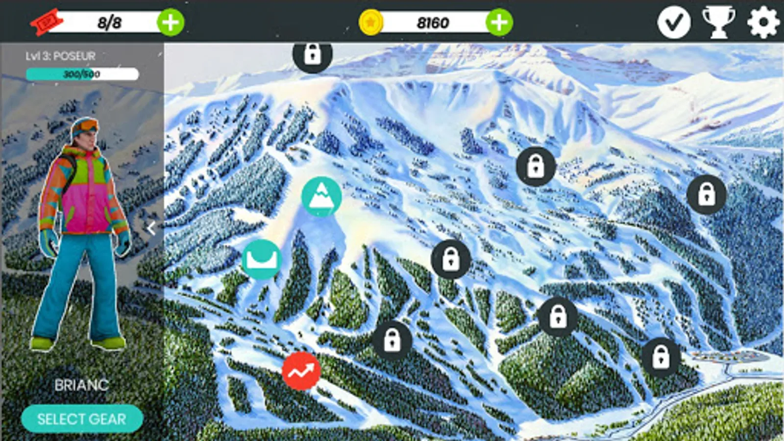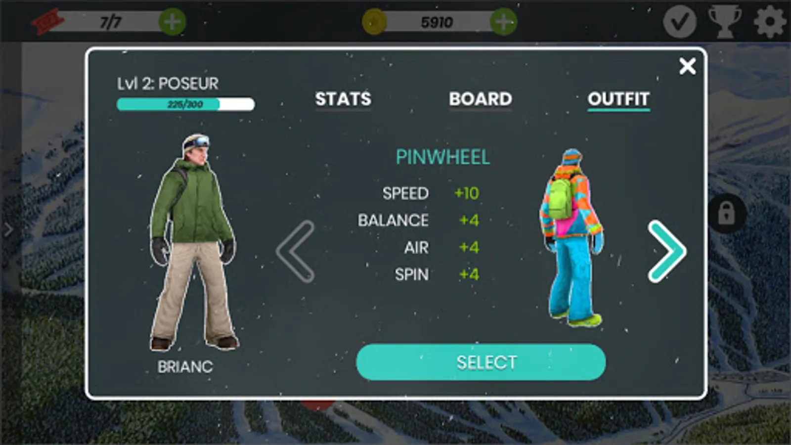 - Play often to gain experience points and upgrade your snowboarder’s stats.