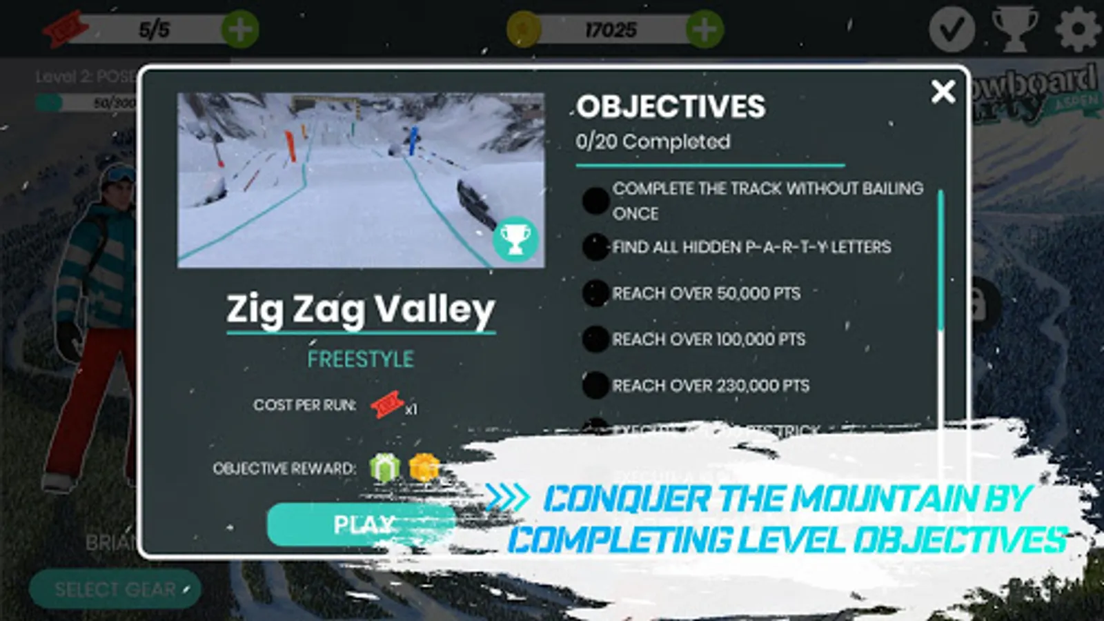 Every 4 hours, you will have the opportunity to complete a new snowboarding challenge! Complete the bonus challenge to earn rewards, lift tickets, coins, and exclusive gear.