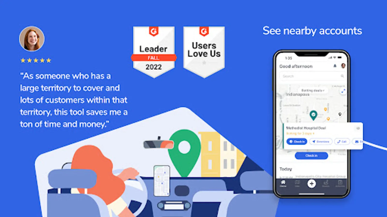 - Lead Generation: Find nearby prospects to add to your route on the fly or make up lost time from a cancelled appointment