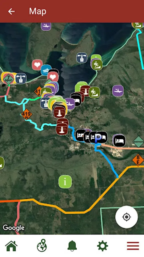 Explore an area by using map navigation menus or clicking on map icons. Show “my location” feature option. Map-N-Tour downloads the tour to your device allowing quick access to that tour any time you want to view it. Content Accessible Offline: Map icons, trail paths, text descriptions, images, audio files, map overlays, polygons, and user location services.