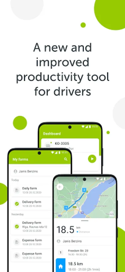 A fleet management mobile application for drivers and field workers that will improve the efficiency of transport companies, delivery services and other businesses. Available only to clients who have access to the platform!