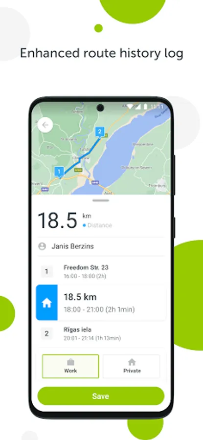 Route history - a complete log with all of the driver's previous travels. Add comments, client names and costs to each route and view reports in the platform;