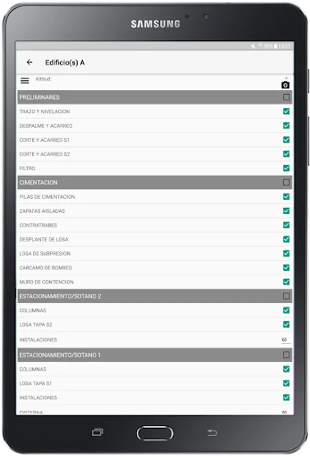 Application that allows the capture of the work progress on site showing the project graphically and using geo reference.