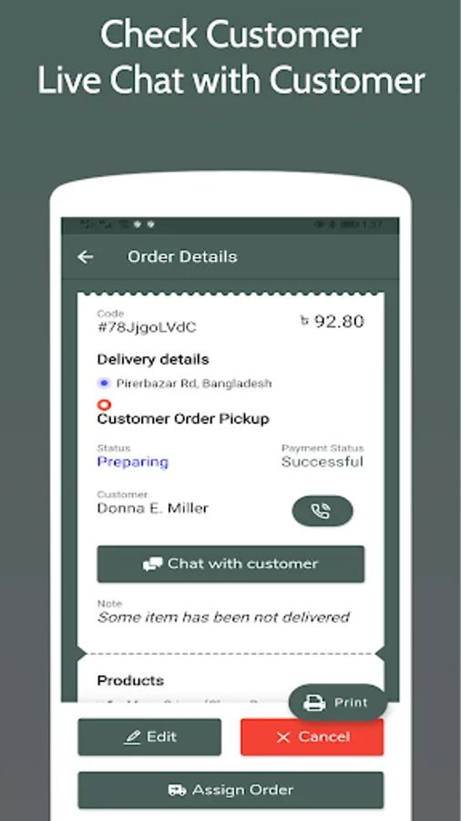 - Edit customer orders