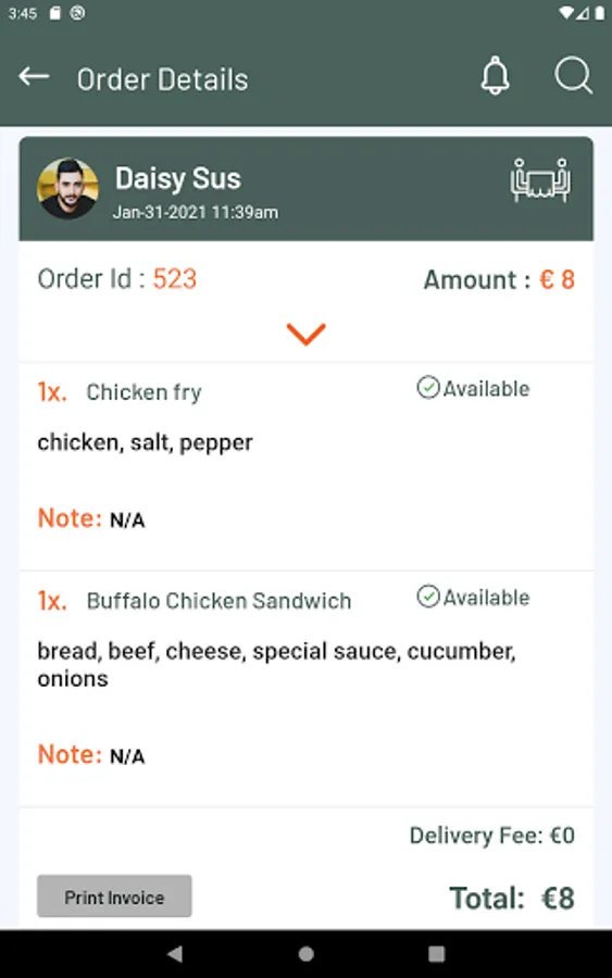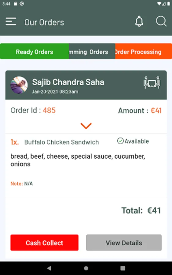 2. Waiter can see upcoming order list