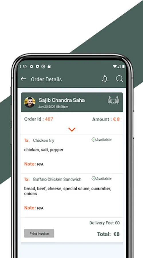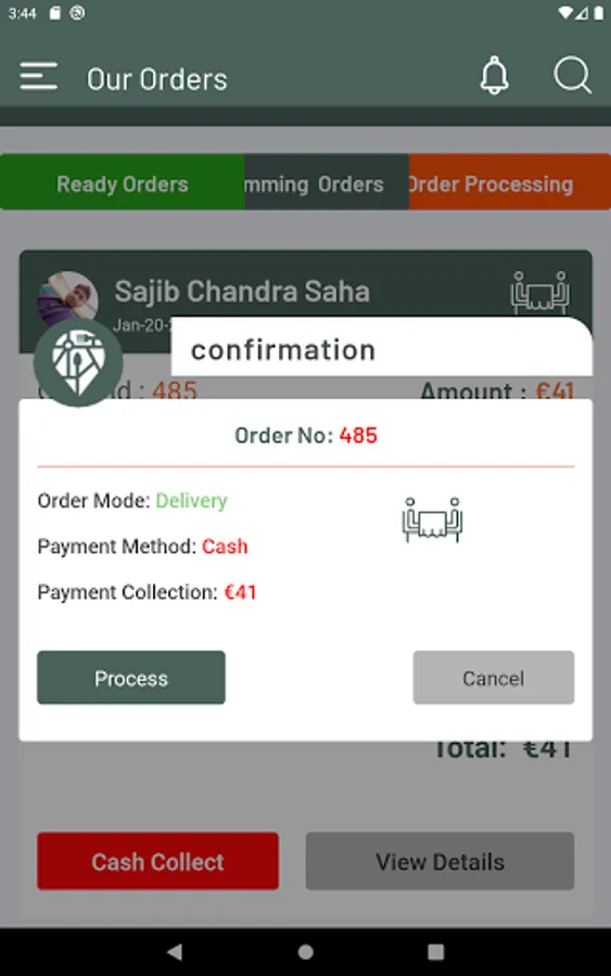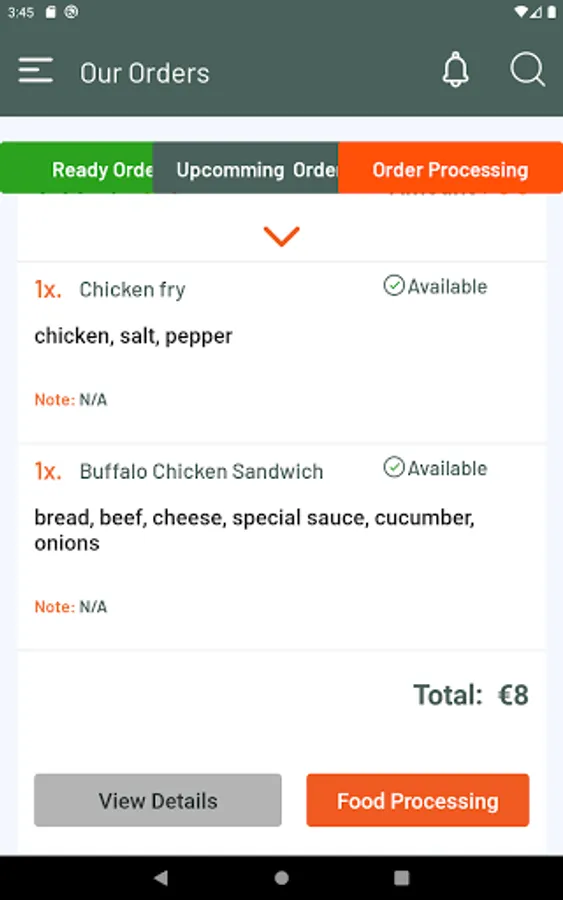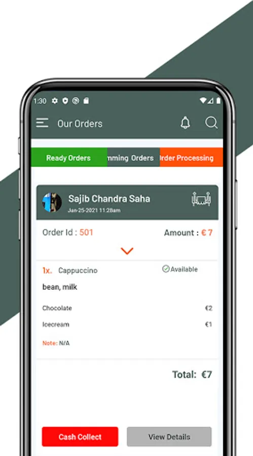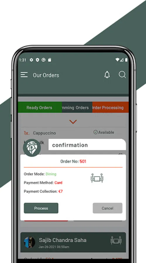 3. Waiter can see processing order list