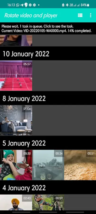 Instructions:- Video will added in queue after click on desired video. Rotate operation depend on video length and quality, so this operation takes time. Please be patience. Video process one by one from the queue. After process complete video will start playing automatically.