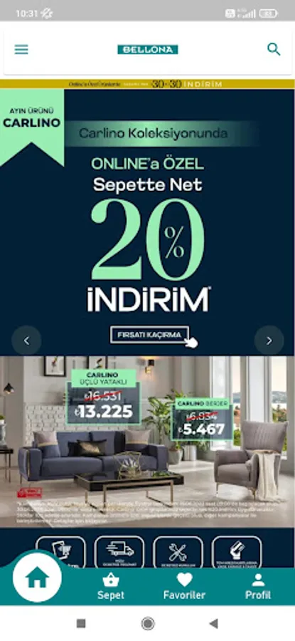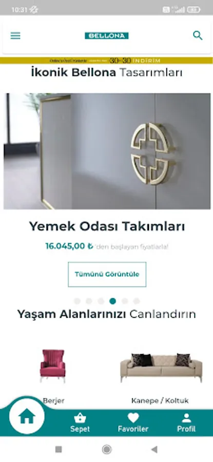 Bellona E-commerce Mobile Application offers you a wide range of products. From living room sets to bedroom furniture, from garden furniture to decorative products and complementary accessories, everything that will meet your needs is here. Thanks to its user-friendly interface, you can quickly find the products you want and examine them with detailed explanations and images.
