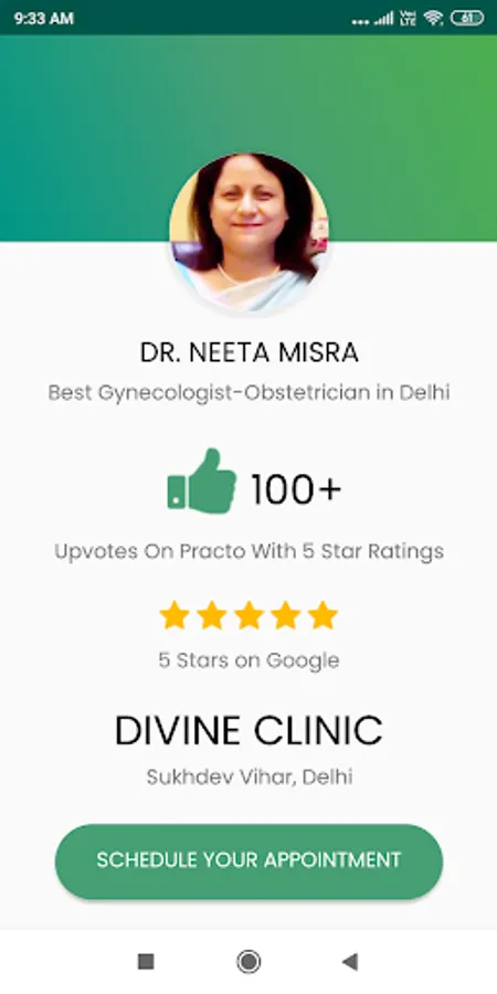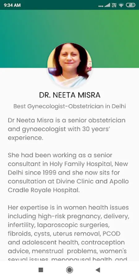 The app ensures a confirmed consultation with Dr. Neeta Misra, so you need not worry about the time of the booking or slot occupancy. Find all the available time slots for appointment times and make a booking whenever and wherever in just a tap.
