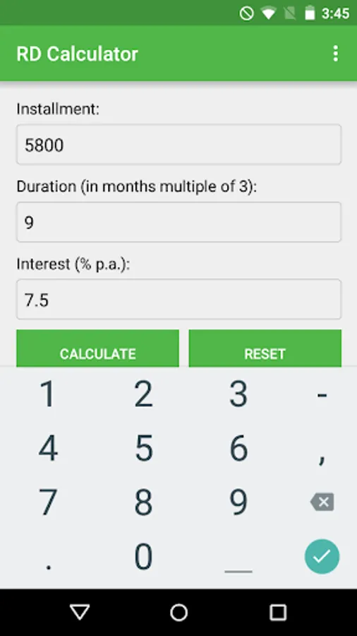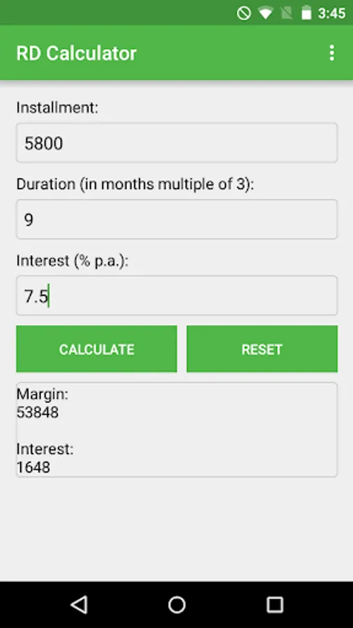 This Recurring Deposit calculator lets you enter the principal amount and the rate of interest. Then, all you have to do is press the submit button and, voila! You have the rd maturity value and the interest amount. It’s that simple, folks!