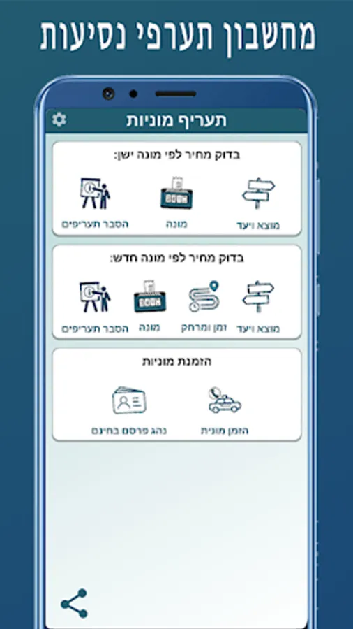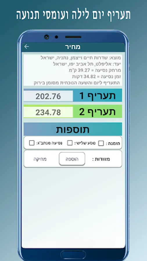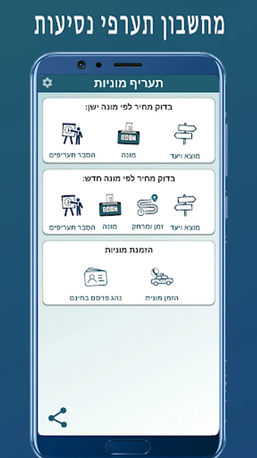 The price will be calculated based on several parameters such as the travel distance, the estimated travel time according to the current traffic conditions, and additional options such as extras such as a toll road, telephone order and more....