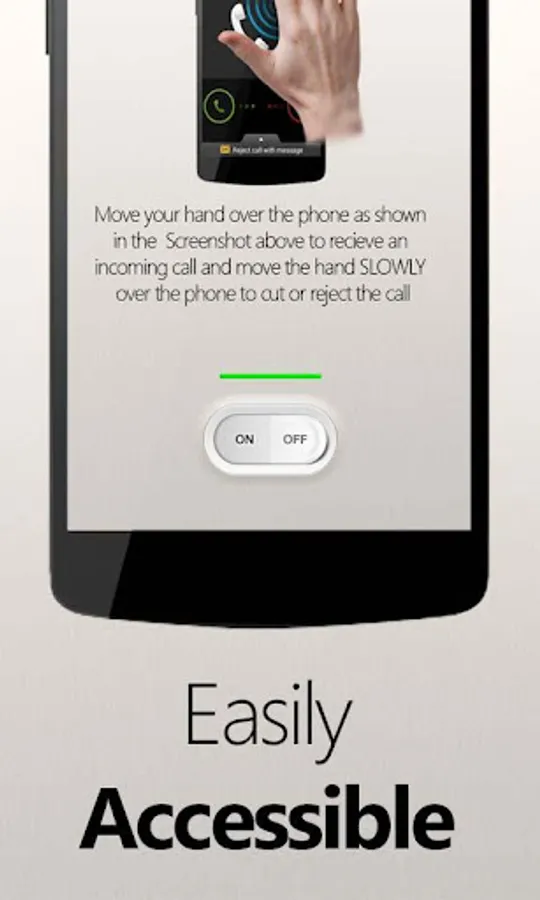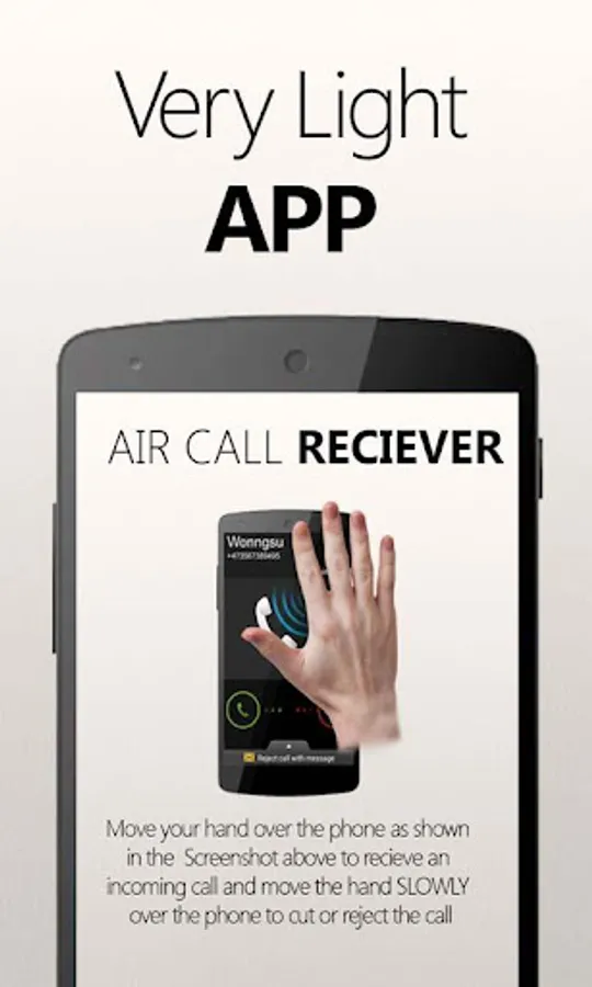 Now Enjoy With Gesture feature In Your Mobile Phone. You can now Receive or Reject any call by just moving your hand above your device. No touch and no swipe required. Just a smoothly move of your hand over device.