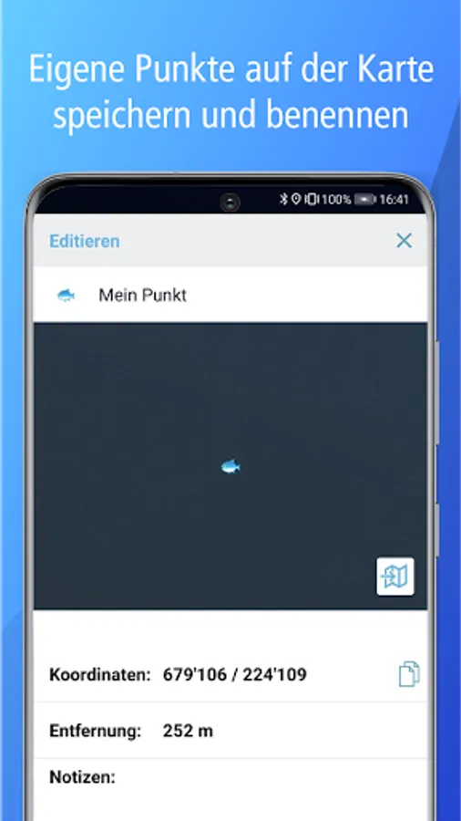 • Save your own points on the map and add notes