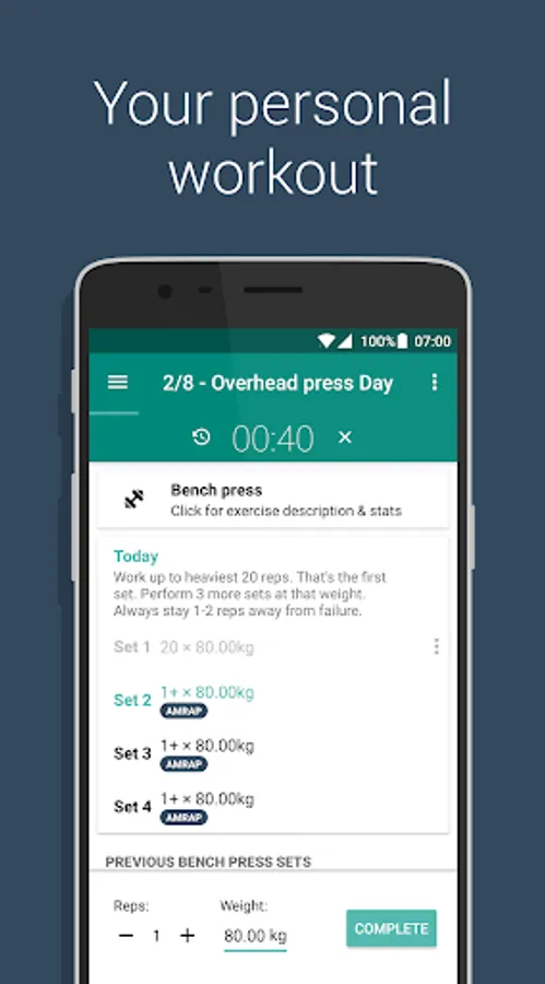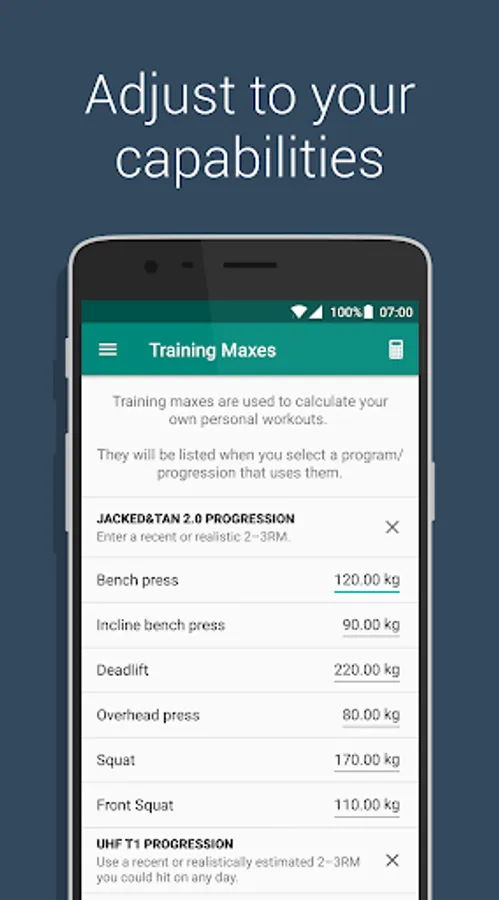 • Calculator, to estimate how you would perform a certain amount of reps.