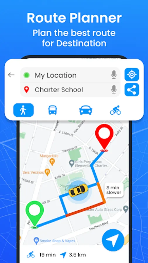 Easy route finder helps navigate around the world with geolocation. Global Positioning System includes a variety of map views. Navigator trip plan navigation GPS tool guides the user to find the exact direction and shortest route for your destination place. GPS navigation and travel guide enable the user to travel on an exact route on a map.