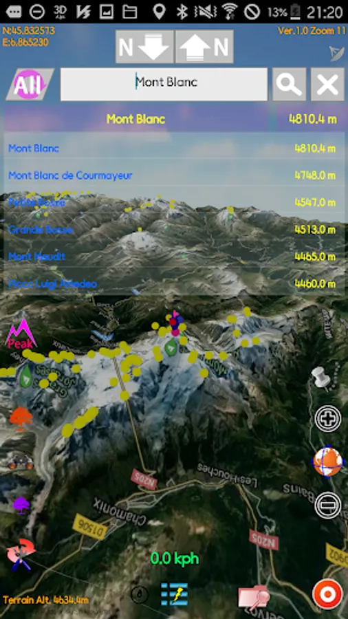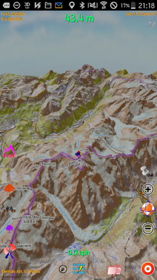 You can save track files within the 3D terrain surrounding Mt.Alps and