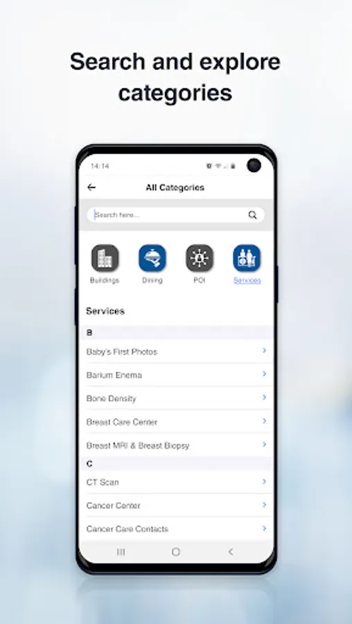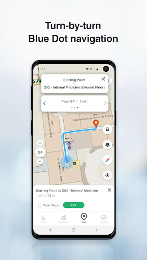 The St. Clair Health Wayfinding digital application will provide step-by-step directions throughout the campus. Users may view the indoor maps, search for a specific department or service and navigate to a selected destination. The “Blue Dot” representing the user’s current location helps guide them from their point of origin to their destination.