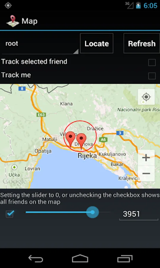 You can also have the map continuously centerd on a certain friend and track him/her as he/she is moving.