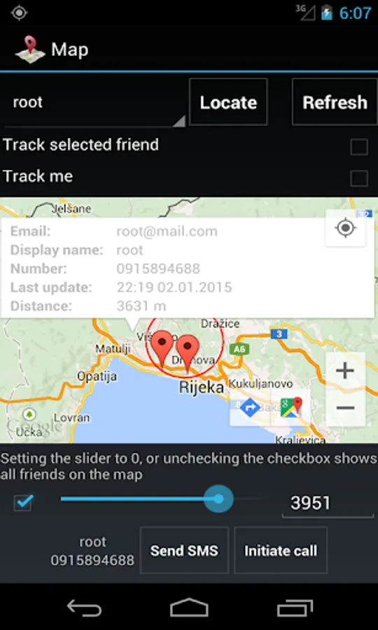 You can not only see your friends on the map, but you can either send them an SMS, call them, or navigate to their location by tapping on the marker showing their location. You can also see the time of their last update, to avoid confusion about their actual location.