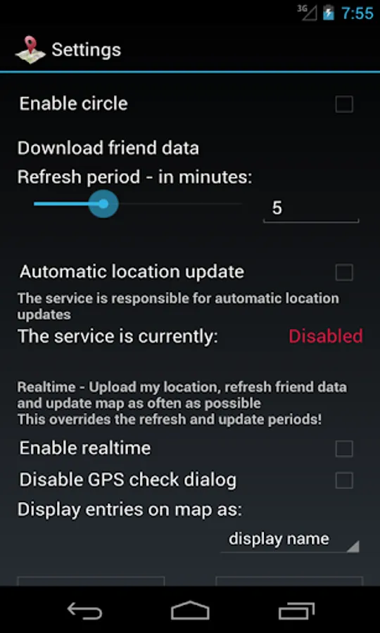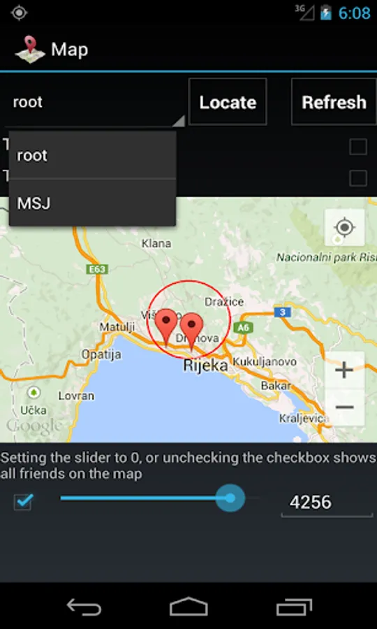 The map section allows you to limit the number of friends being displayed by the range you specify, shown by a circle around your location, or you can choose to show all friends, no matter the range.