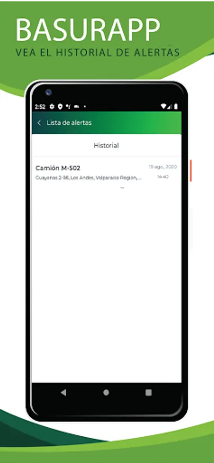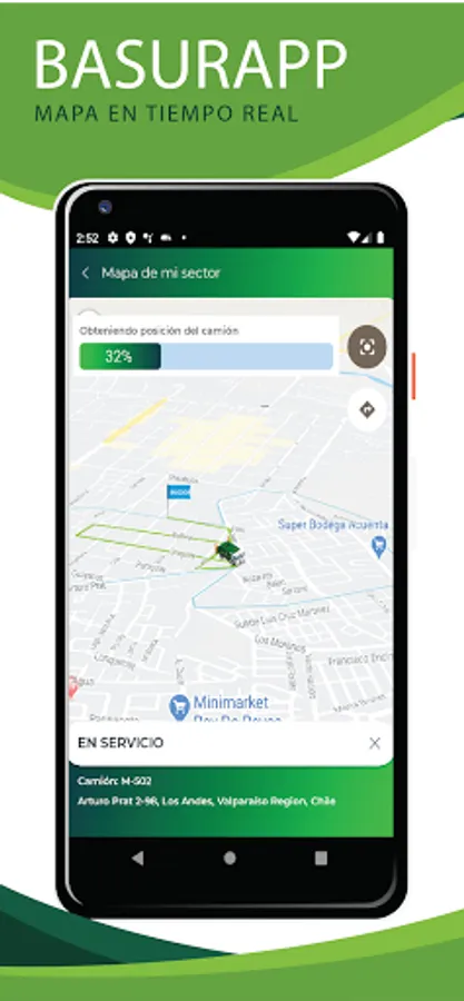 Mobile application that allows, through the GPS equipment, implemented in the garbage collection fleet, to notify the user of the moment of the removal of the garbage from his home or commercial premises.