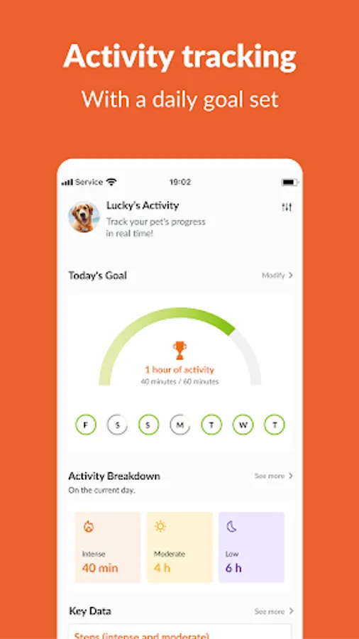 In addition to position history, the tracker also records your pet's activity and shows you its territory range. This enables you to see the distances your pet covers and how active it is.