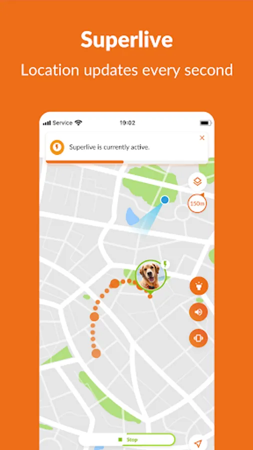 You can choose how often the tracker transmits its position: 30 seconds, 1 minute, 1 hour, etc. If you need to find your pet quickly at any time, you can use the super live mode, which gives you a position every 10 seconds.