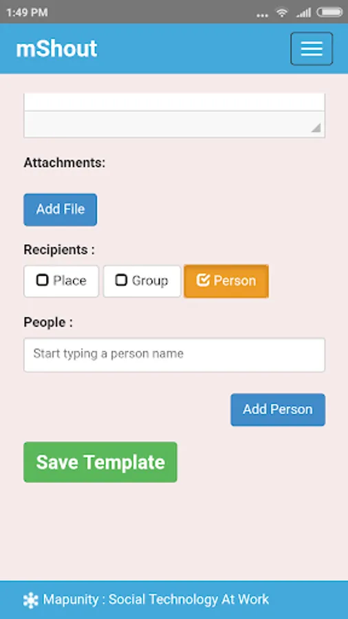 mShout is a small business app that helps traveling sellers announce their presence at a particular location to retail customers. With the rise of campuses and communities, there is growing physical separation between those selling goods from mobile carts and their customers. The app enables these sellers to 'shout' out their presence digitally to customers, in much the same way that they did physically. mShout is also integrated with Mapunity’s mPlaces app, and can be used from within that application as well.