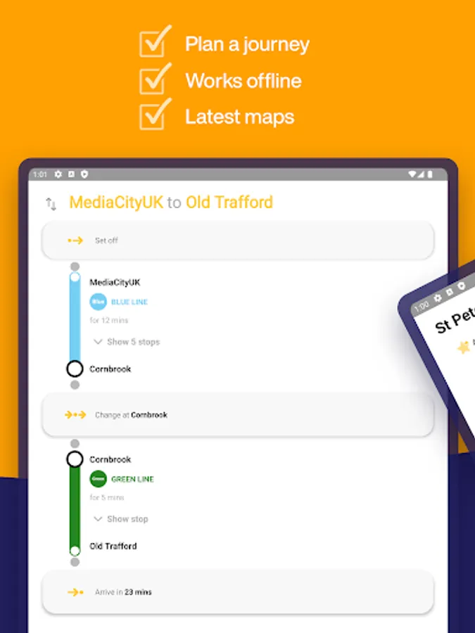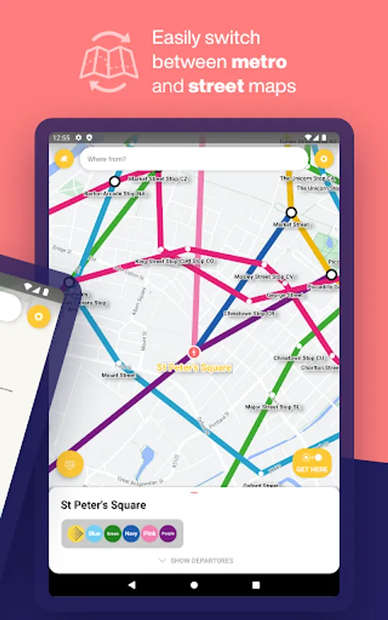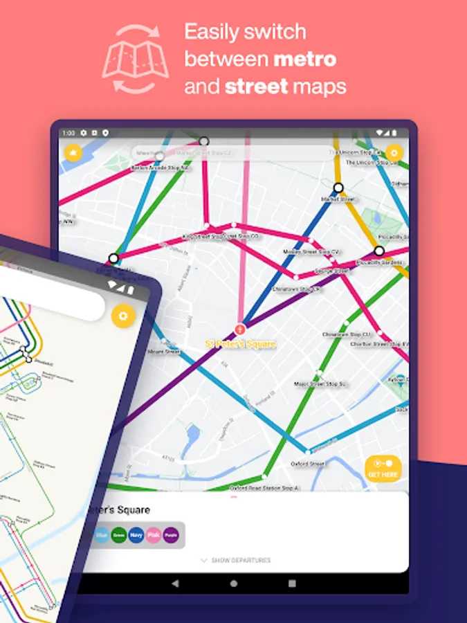 Manchester Metro is the navigation app that makes travelling by the Manchester Metrolink and free buses simple 🚊