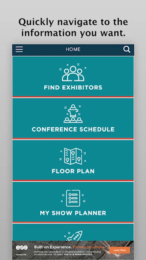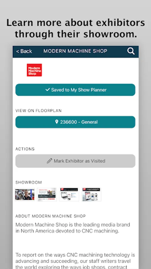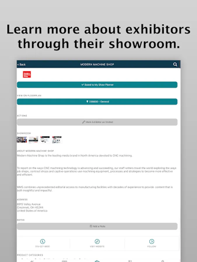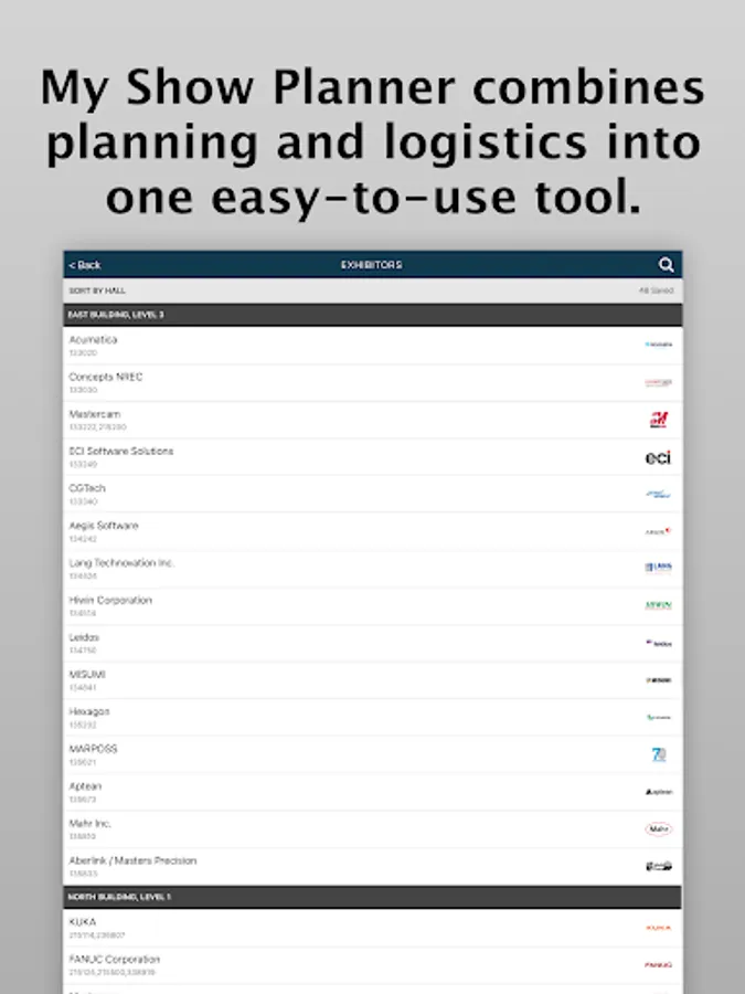 • Access your entire MyShow Planner on your mobile device — agenda, favorite exhibitors, favorite products, conference speakers