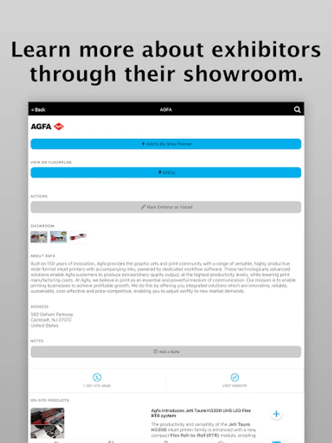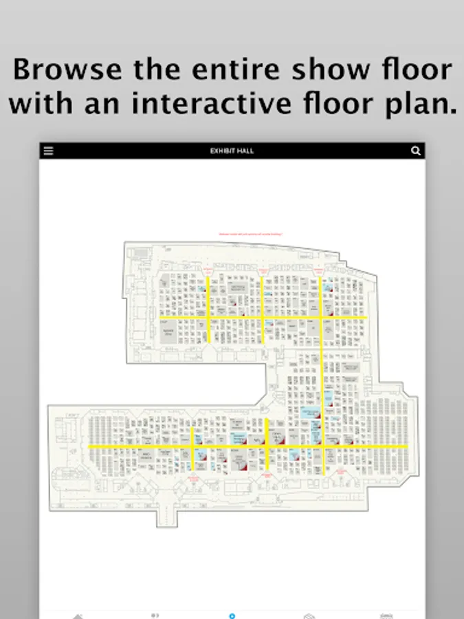 • Browse exhibitors and products through the interactive floor plan