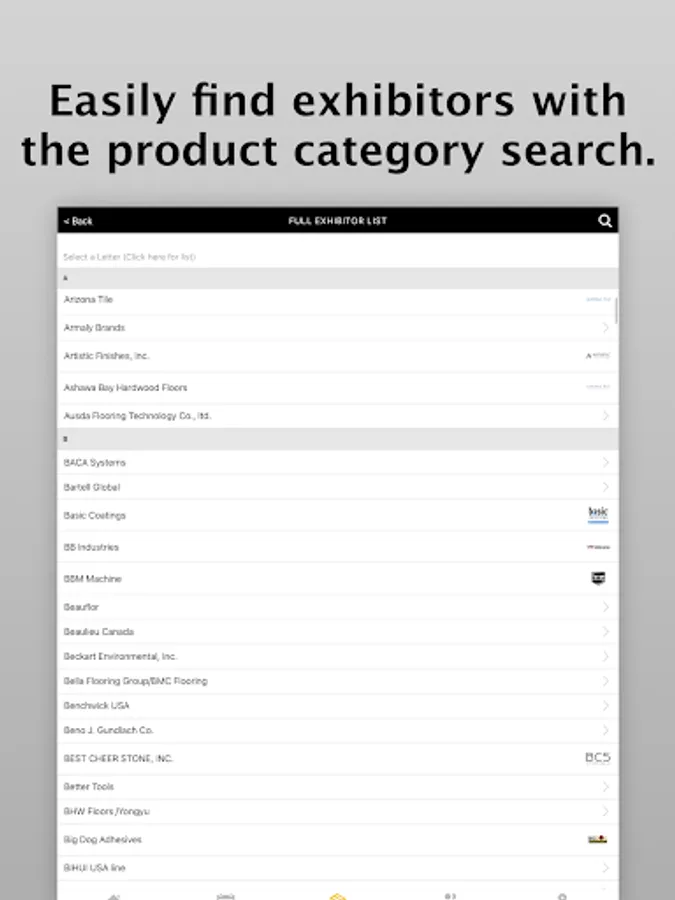 -Search for exhibitors and specific products