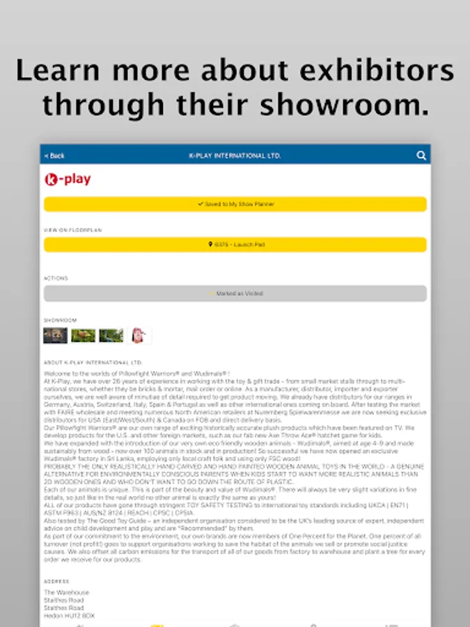 The Toy Fair mobile app will allow registered exhibitors and attendees to: