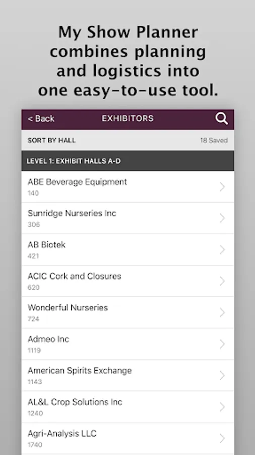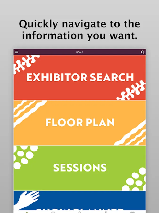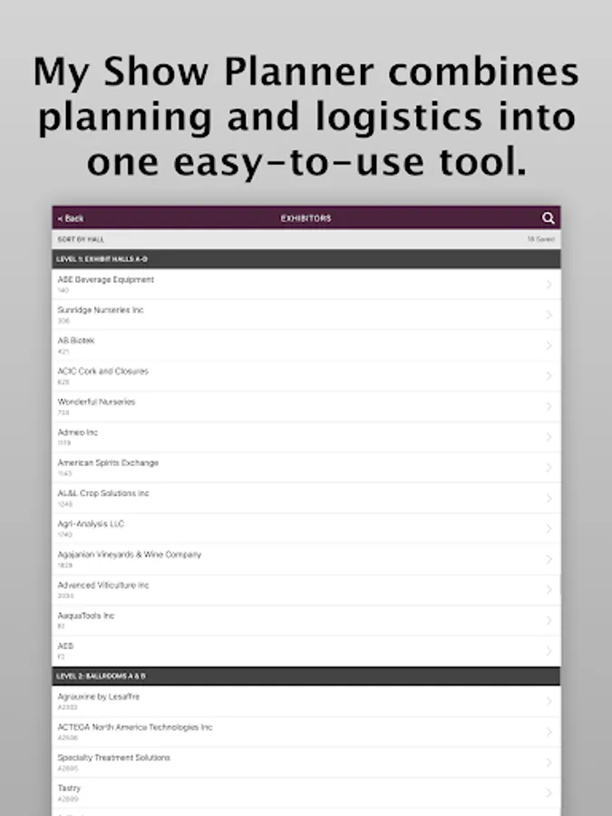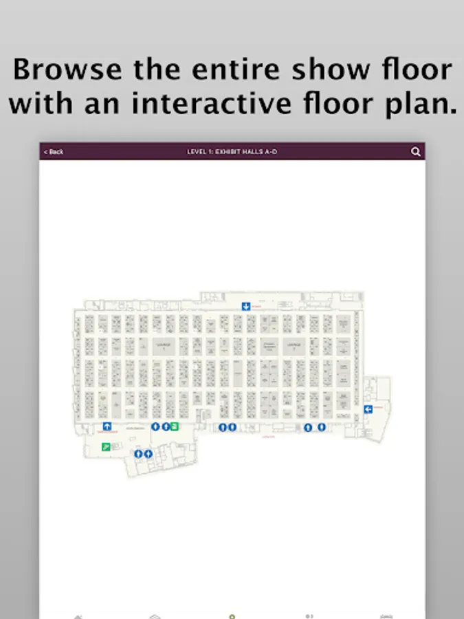 App users can easily create their own customized itinerary of exhibitor booths to visit and sessions to attend. The app provides: